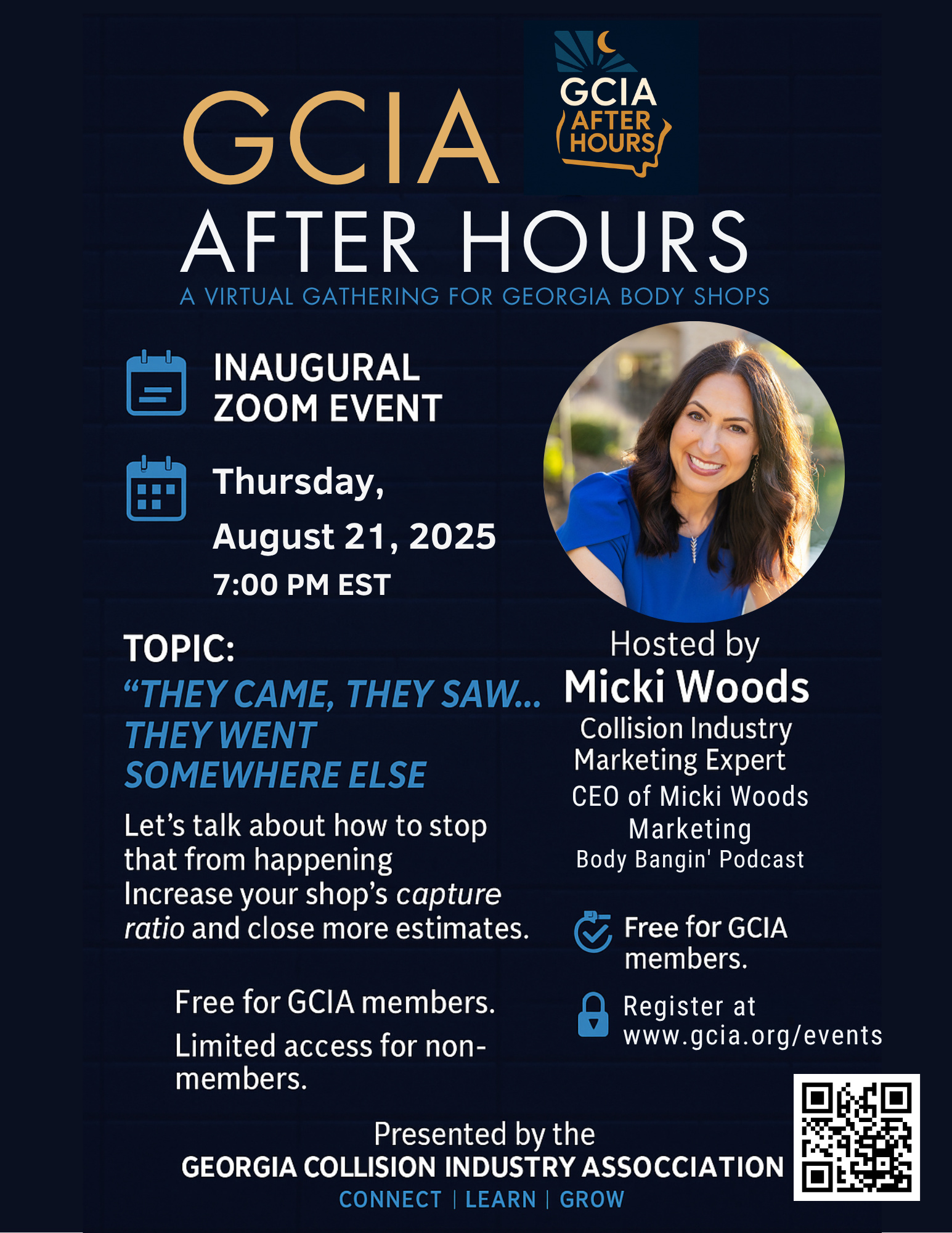 Hosted by industry powerhouse Micki Woods, this is your chance to connect, learn, and grow with fellow Georgia shop leaders—AFTER HOURS.
